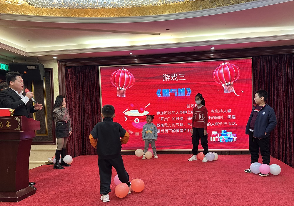 《光盤拔河》哦諾多姿的身體擺動、《戴帽子吃糖》猙獰狼狽的努力表情和《歡樂踩氣球》你來我往的大混戰(zhàn),更是給年會增添了許多樂趣。